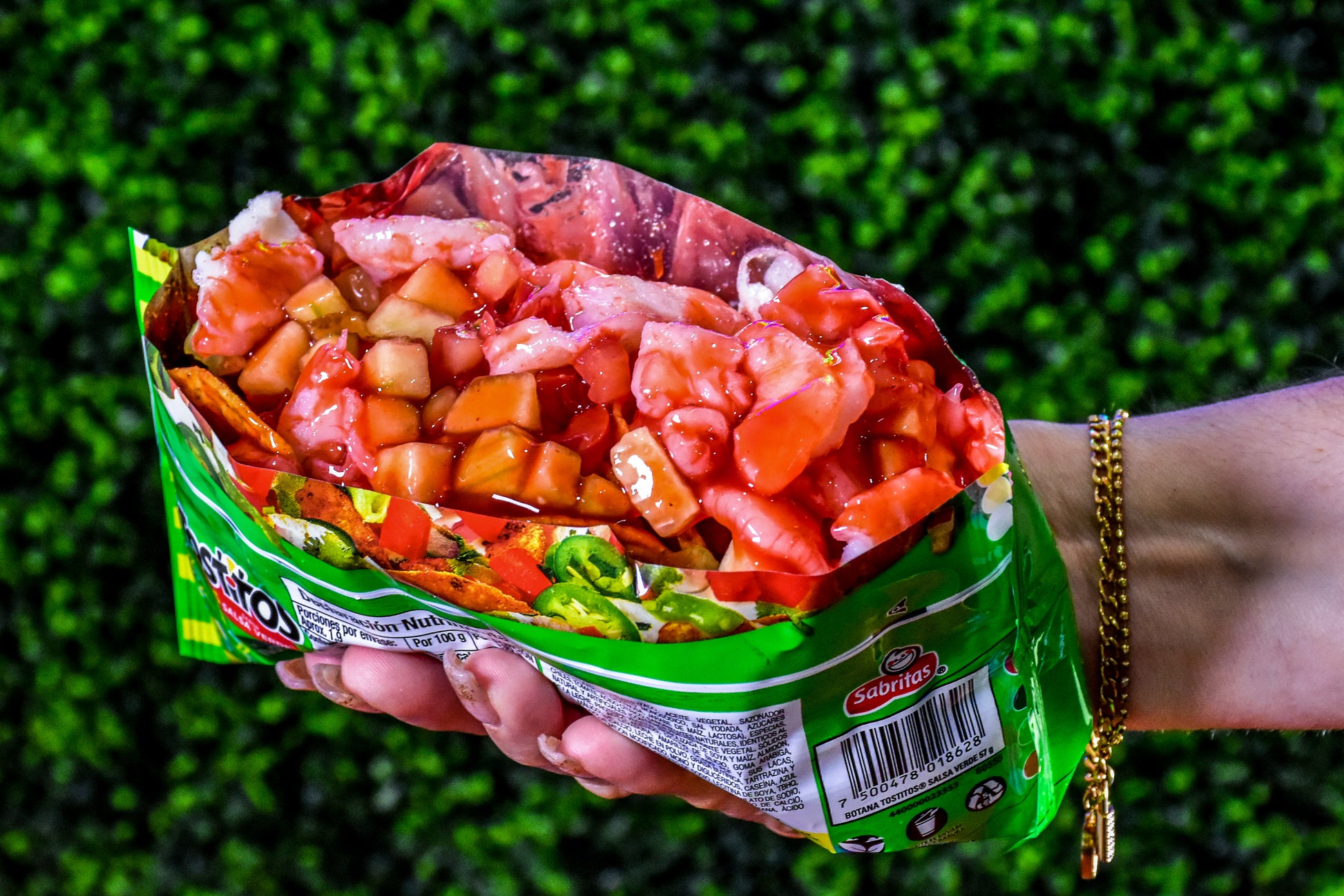shrimp, cucumber, tomatoes, clamato, lime and chamoy